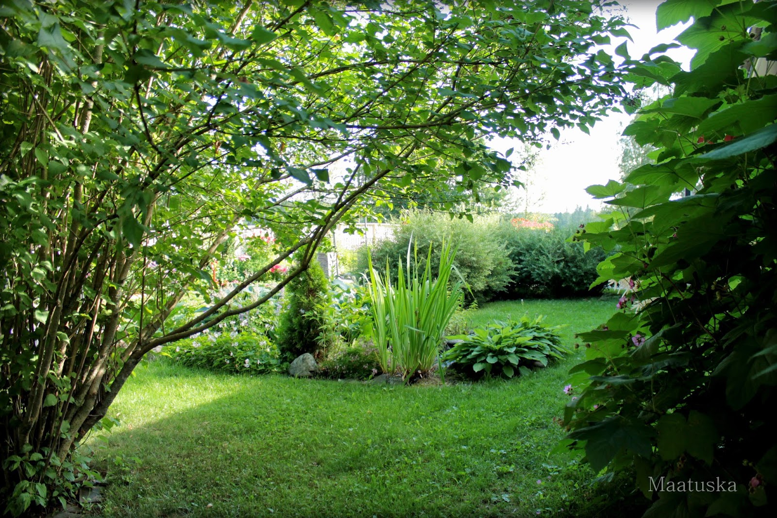Kasvaa tässä mantsuriankärhön kupeessa, on vain kallistunut nyt sateilla aitaa vasten.