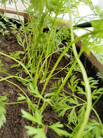 -pikkuisen soveltaen....olen kyllä joskus kokeillut huonolla menestyksellä porkkanoiden kasvatusta maassa (n. 30v. sitten) mutta tänä vuonna kokeilin kasvattaa niitä korotetussa lavassa harson alla ja onnistuin mielestäni kohtalaisesti. Ei yhtään tuholaisen turmelemaa! Ensi vuonna tuplasti kasvamaan :)